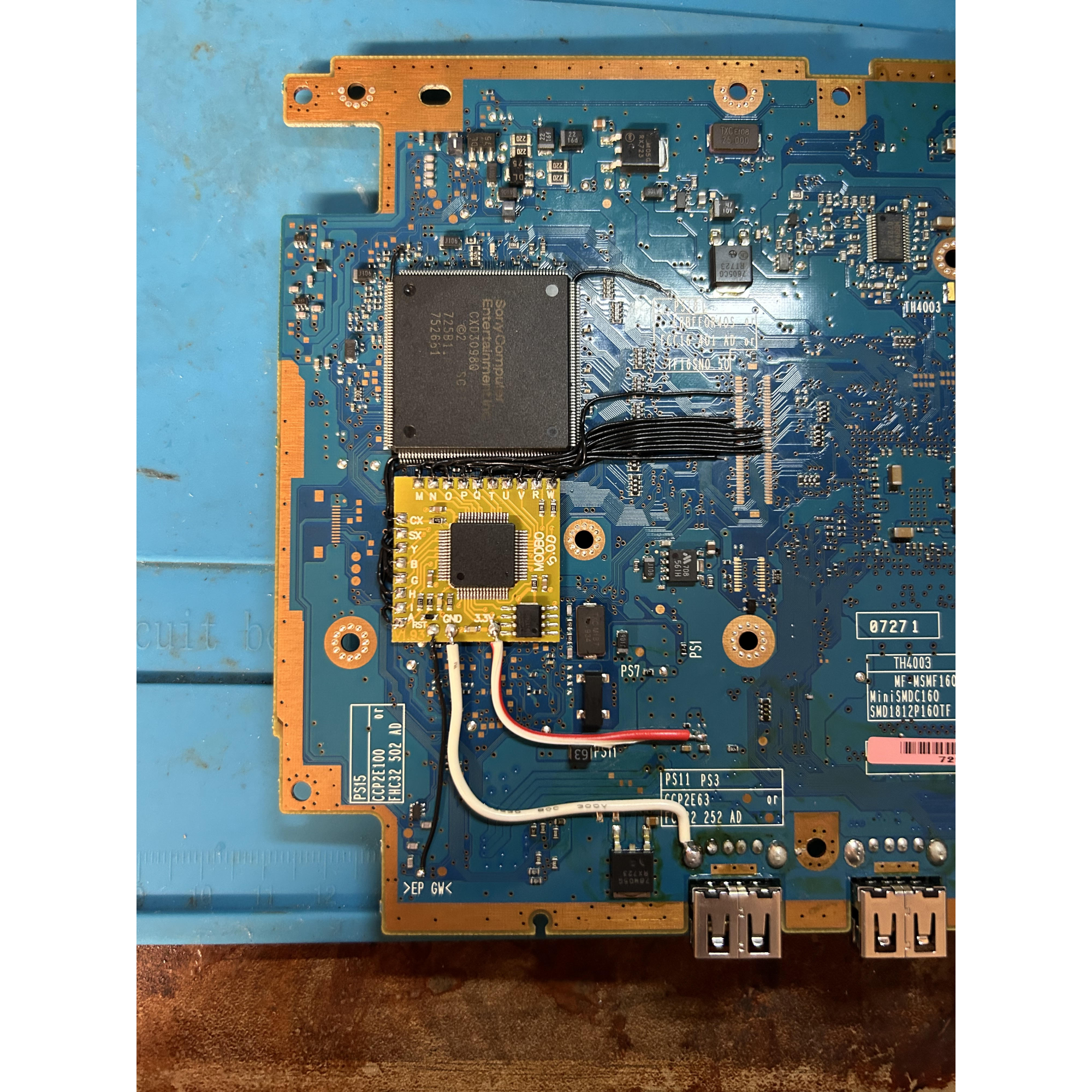 Moddad med Modbo 5 chippet, för att spela spel från alla regioner samt brända spel.