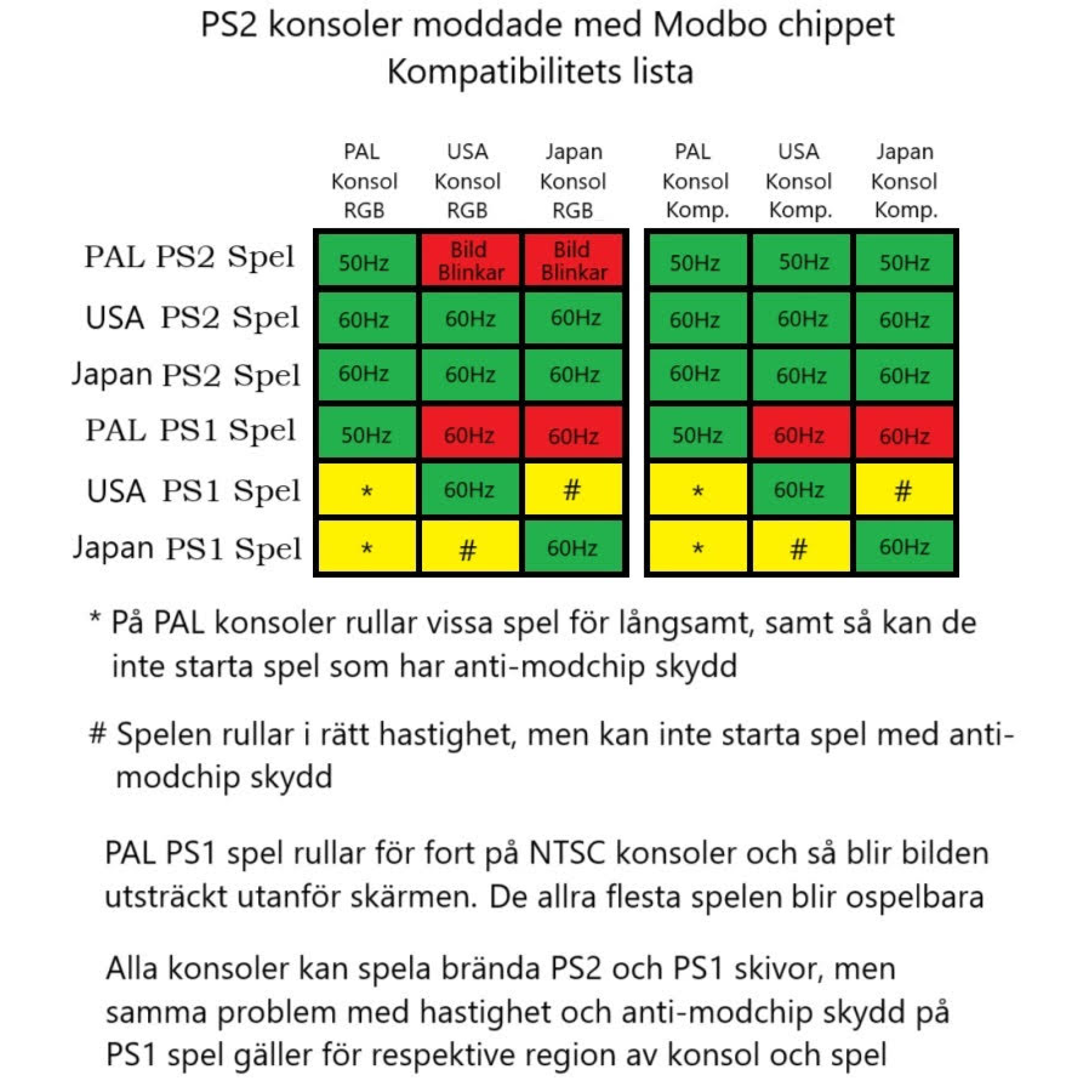 Spelar alla PS2 spel från andra regioner, i rätt hastighet (60Hz).